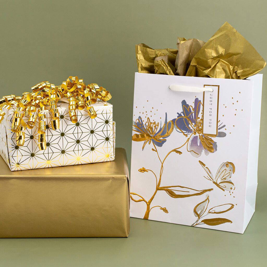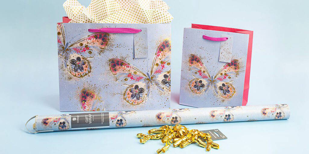 COLLAGE Gift Dressings offer trend-driven designs, from bold geometrics to whimsical characters and modern florals, crafted to elevate the joy and anticipation of gift giving. Our wraps, ribbons, and bags combine style and innovation to make every present a delight to give and receive.