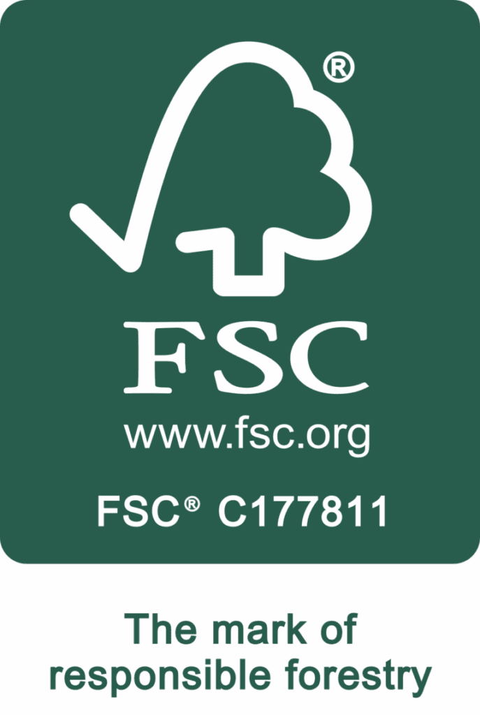 Approximately 90% of our products are made using sustainably sourced (FSC®) material with new designs featuring the FSC® logo on the back of the card, providing peace of mind that your card has been created sustainably. This means that any of our cards can be traced all the way back from the shop shelf to the forest that provided the wood pulp to make the card.